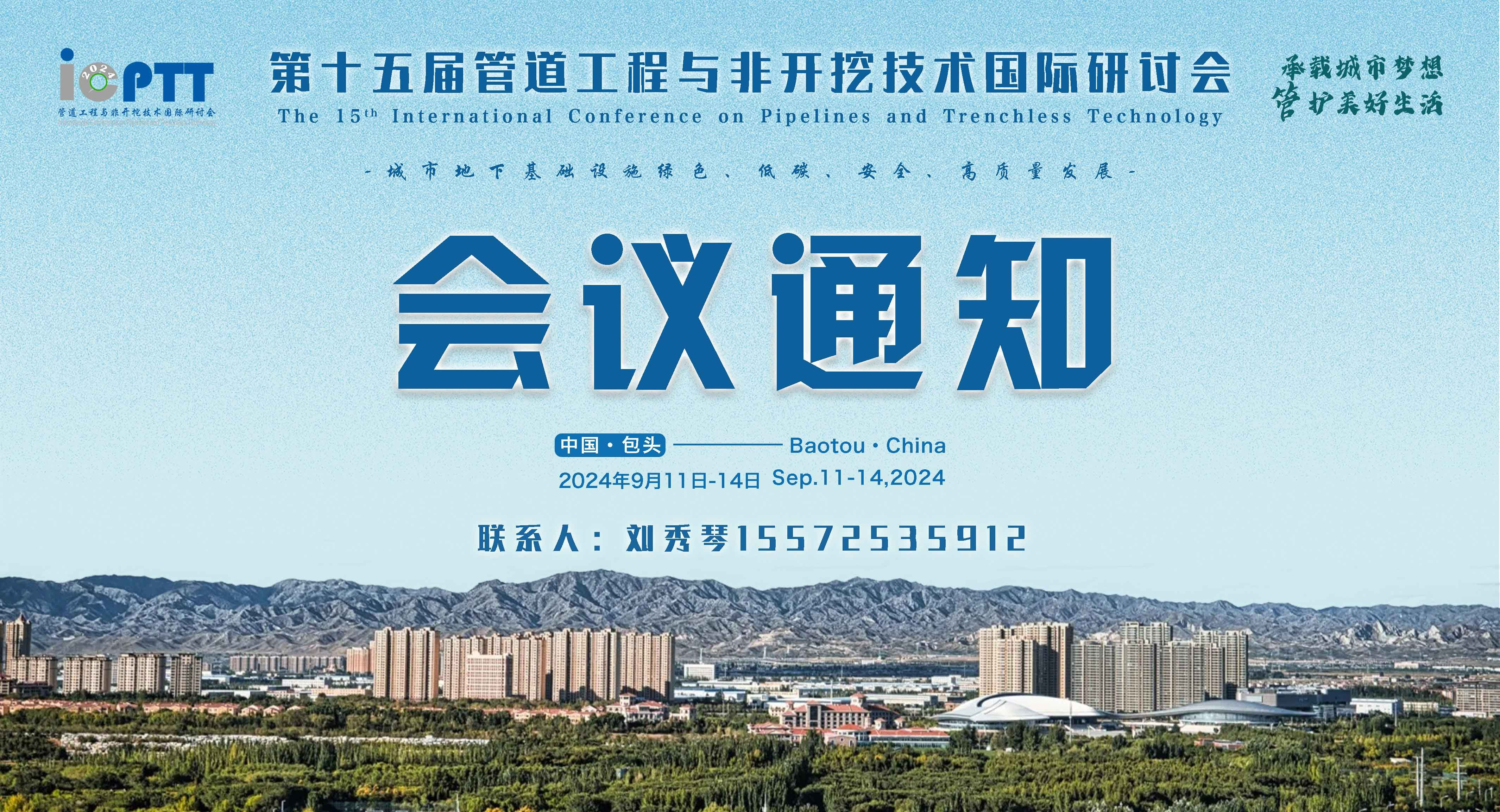 關于召開“第十五屆管道工程與非開挖技術國際研討會(ICPTT2024)”的通知 各有關單位: 為了持續(xù)更好地推動管道工程和非開挖技術領域創(chuàng)新性科研成果、新技術和先進工程經(jīng)驗的探討、交流和復雜問題的協(xié)同研究,促進管道與非開挖工程領域政、產(chǎn)、學、研、用的共同進步,快速提高管道建設水平,服務于我國城市地下管線基礎設施建設與更新改造,中山大學、內蒙古科技大學、同濟大學、鄭州大學、中國地質大學(武漢)、長江生態(tài)環(huán)保集團有限公司、壩道工程醫(yī)院等單位將于2024年9月11-14日在中國包頭市共同組織